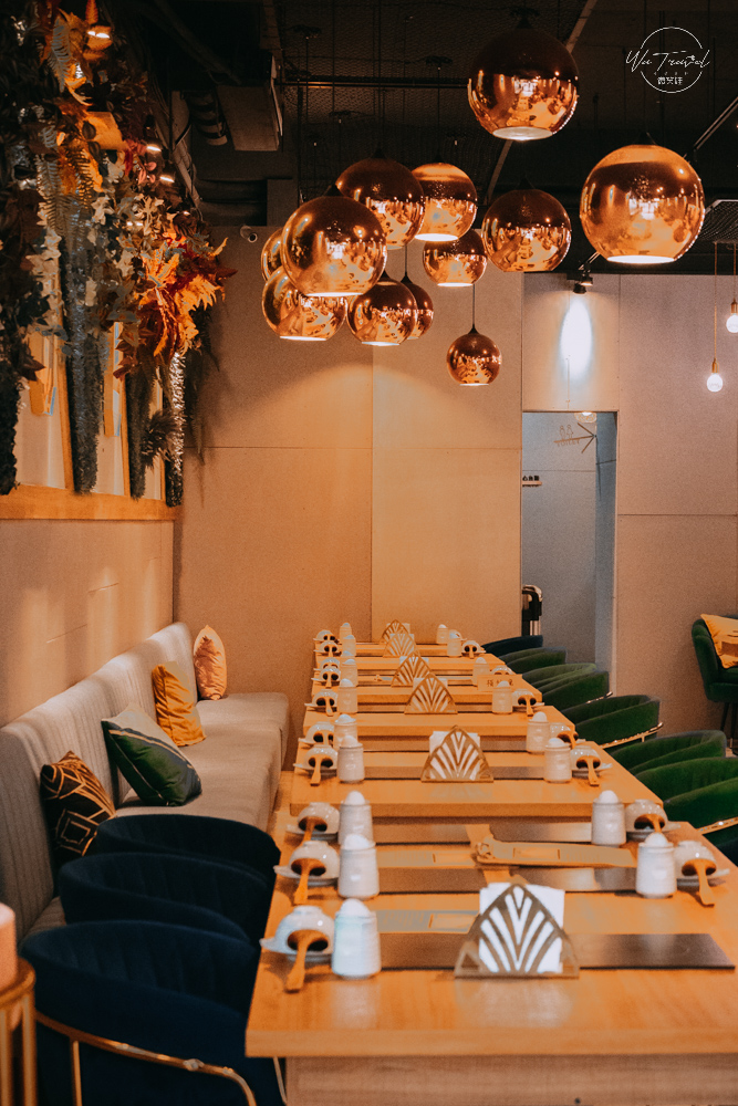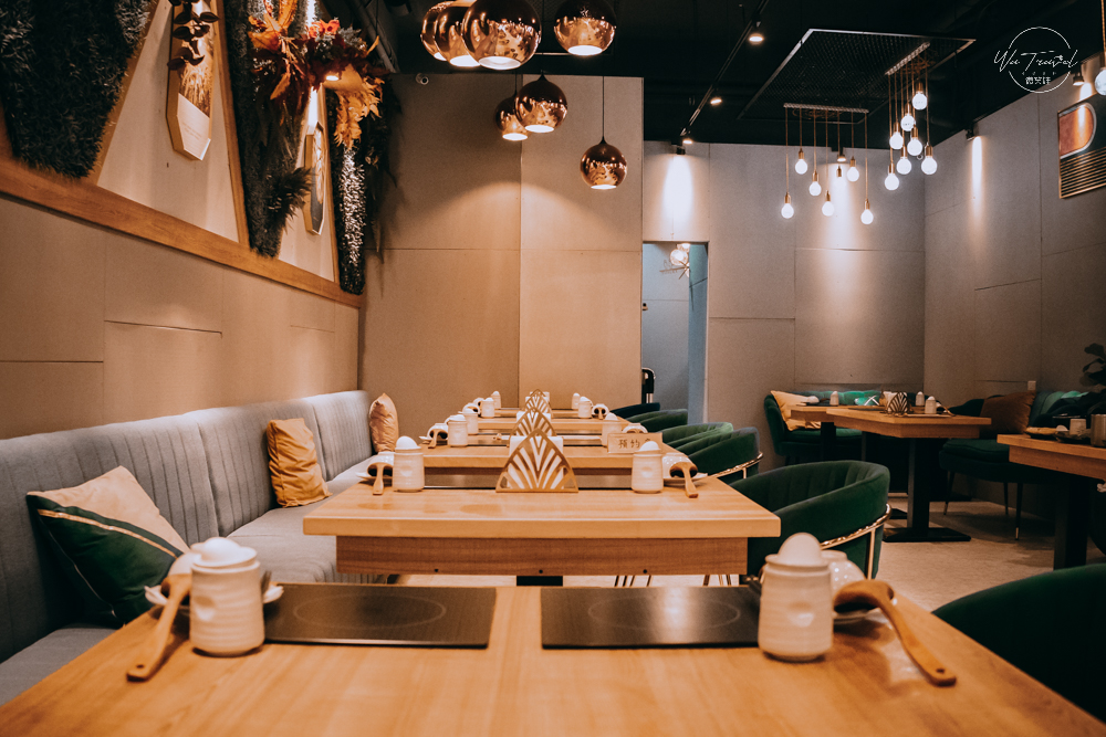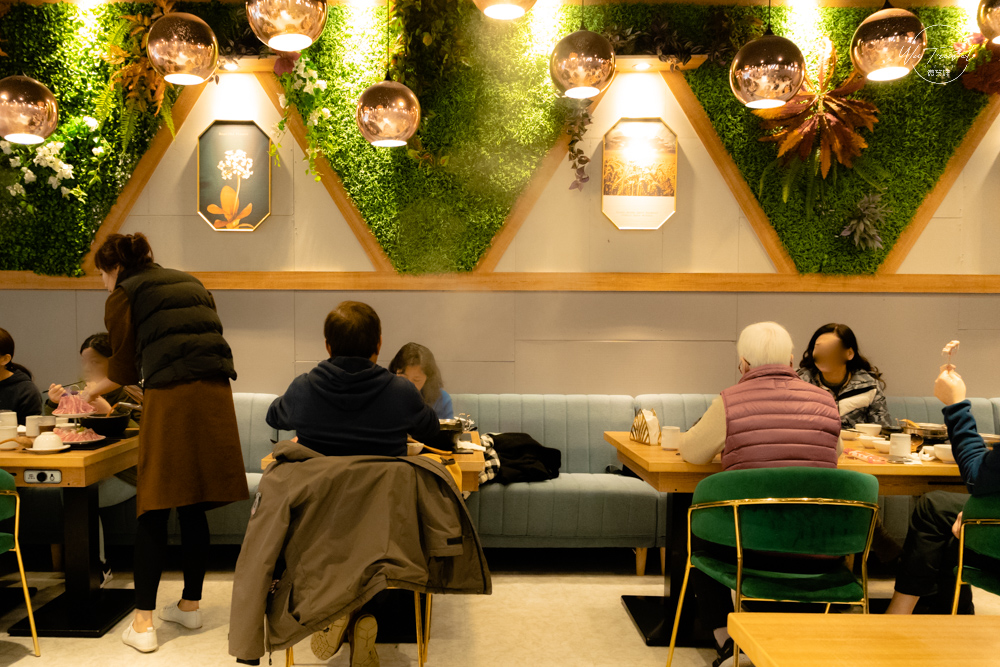 御鼎湯 原本鍋物 林口店,看到御鼎湯的裝潢一定會很多人會誤以為這裡是咖啡廳,裝潢上用了不少的與眾不同新意,包含貝殼沙發座椅、綠意花牆、天使翅膀還有工業風的燈飾跟浪漫的鳥籠雙人坐椅、粉色系高腳椅,處處都是讓人想要停留拍照的一隅。