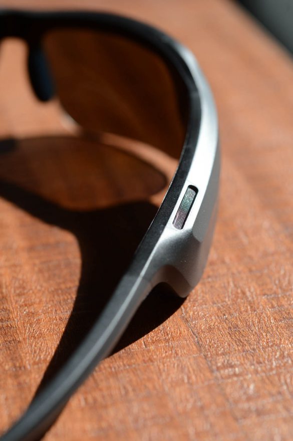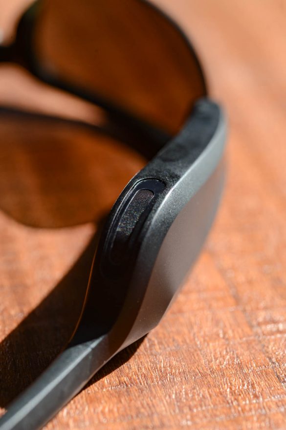 控制方面,主要是靠著右側的這支鏡腳,按鈕的功能在開機連線、換歌等等;有趣的是音量的調整從上一代很動感(?)的左右擺頭調整音量,改成了利用鏡腳上觸控滑動的方式來調整,這個有點好玩,剛拿到時,會不自覺地調來調去,後來發現實在沒有必要一直調整音量才作罷。而抗噪部分,您當然是多想了,開放式的設計是沒有抗噪功能的,但是有內建麥克風可以讓你接電話。