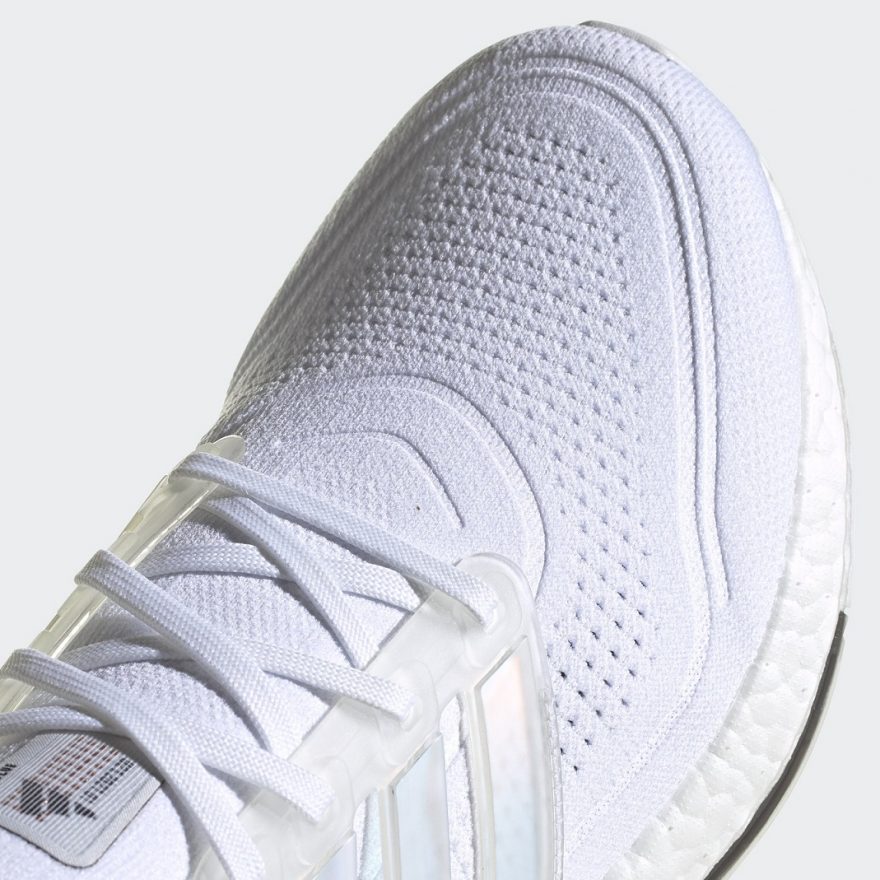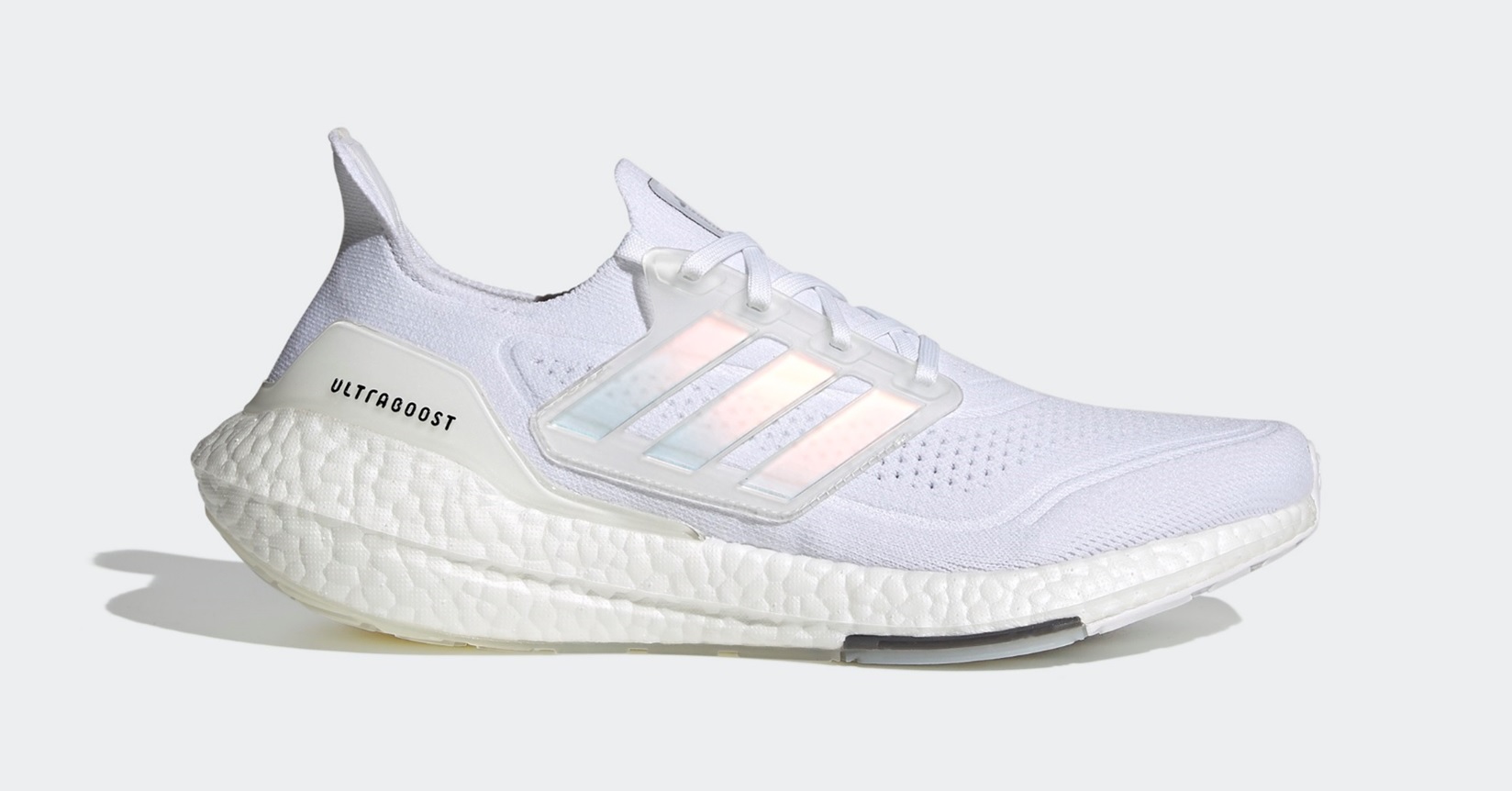 adidas Ultraboost 21 首發 ‘Triple White’ 以雪白配色貫穿流線鞋身,鞋側半透明三線標誌則以漸層淡藍色點綴,鞋後跟 TPU 承襲鞋款設計壓印上 “Ultraboost” 字樣,極簡百搭的配色設計,滿足日常穿搭與跑步訓練需求,自信型格穿梭城市街道。