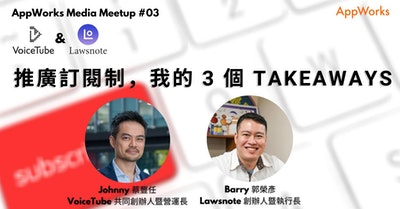 INSIDE 在禮拜三(1/13)參加由 AppWorks 所舉辦的第三場 Media Meetup,這場邀約了 VoiceTube 營運長蔡豐任、Lawsnote 執行長郭榮彥,來各自分享他們推廣產品訂閱制的三個心得(辛酸血淚?)。