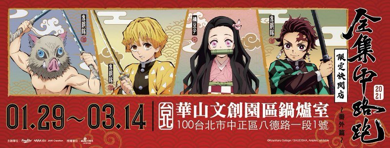 繼路跑活動後,《鬼滅之刃》又將強勢進入各位的生活啦!「《鬼滅之刃》全集中路跑限定快閃店~番外篇~」宣布將在1月底於華山舉辦為期一個半月的快閃店,不只將販售多款獨家日本引進的商品,更會架起路跑限定的「禰豆子氣偶」以及特製木箱,讓粉絲們可以在現實生活一睹為快!