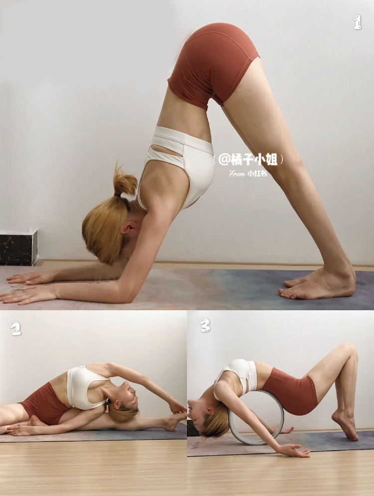 第一步就是打開胸腔的動作~首先將雙腳打開與肩同寬,接著前臂平貼地面,身體呈現倒V狀~在做這個動作時,記得小腹臀部收緊、眼睛盯著腳趾,雙腳平貼地面,這一步可以幫助放鬆腿部,並調整拉伸脊椎,還能打開胸腔跟背部!這一個動作堅持15-20秒。接著可以慢慢坐下,將雙腳張開呈一字馬,右手向左伸觸碰左腳,每側堅持15秒。這一個動作可以幫助延展腰側、胸側線條,還能幫助拉伸到大臂肌肉,提升全身柔軟度。最後拿瑜珈球,或是尋找圓形物體作為支持,將背部作為施力點躺在球上,頭部朝下、雙腳顛起,並將肩頸、背部拉伸到極致,腿部臀部腹部需保持緊繃,堅持15-20秒。這組動作可以幫助舒緩肩頸背部肌肉,緩解肩頸痠痛、背部緊繃問題,還能訓練到核心!