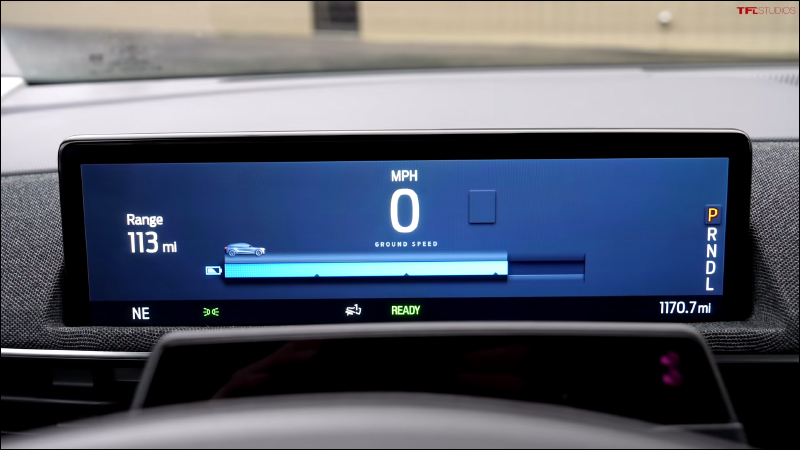 Mach-E 在駕駛座仍配備一個 10.2 吋的全數位儀表,可顯示時速、可行駛里程、檔位、車輛模式等簡易資訊: