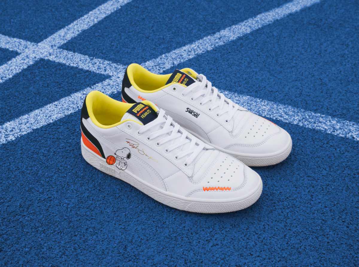 系列中除了短袖T恤、連帽上衣、運動綿長褲等穿搭單品外,也有多款以PUMA的經典鞋款翻完的聯名特色鞋款,其中帶有復古風格的PUMA Ralph Sampson by Peanuts鞋款是以史努比運球上籃的可愛圖案設計,非常可愛喔~