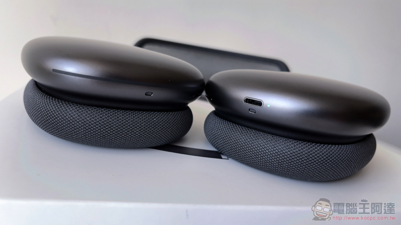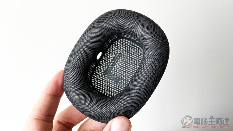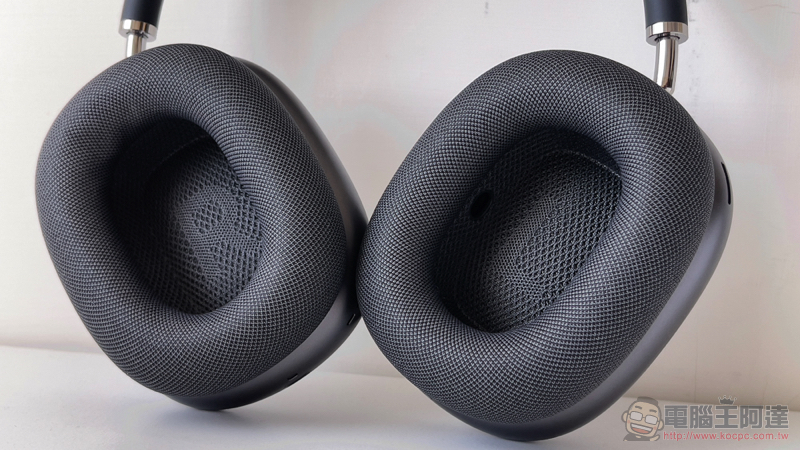 說到非主流的設計,AirPods Max 還提供了磁力吸附的耳罩設計。這個介於你的耳朵與冰涼的整塊鋁合金成形的耳機本體間的耳罩,材質採用記憶泡棉,因此即便配戴口罩與眼鏡都能足夠密合,更能確保主動降噪的效果。而之所以採用磁吸規格,主要是能夠讓人可以輕鬆替換。