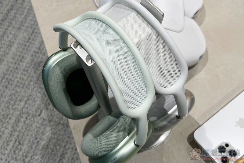 最好玩的是,與銀白色版本的 AirPods Max 分開看,小編會以為銀色與綠色金屬頭帶上的矽膠是系列產品中唯二重複顏色的(白色):
