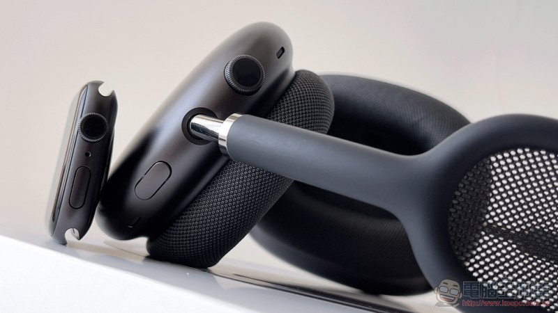 是說,個人覺得 AirPods Max 的旋鈕雖然真的跟 Apple Watch 很像,不過一方面按鈕的回饋彈性在 AirPods Max 上似乎稍微空了點,還有轉動的時候不會有觸覺震動 -- 會傳出數位聲響,可惜的是不會隨著音量變大聲,靜音的時候會怕不小心調過頭 XD:
