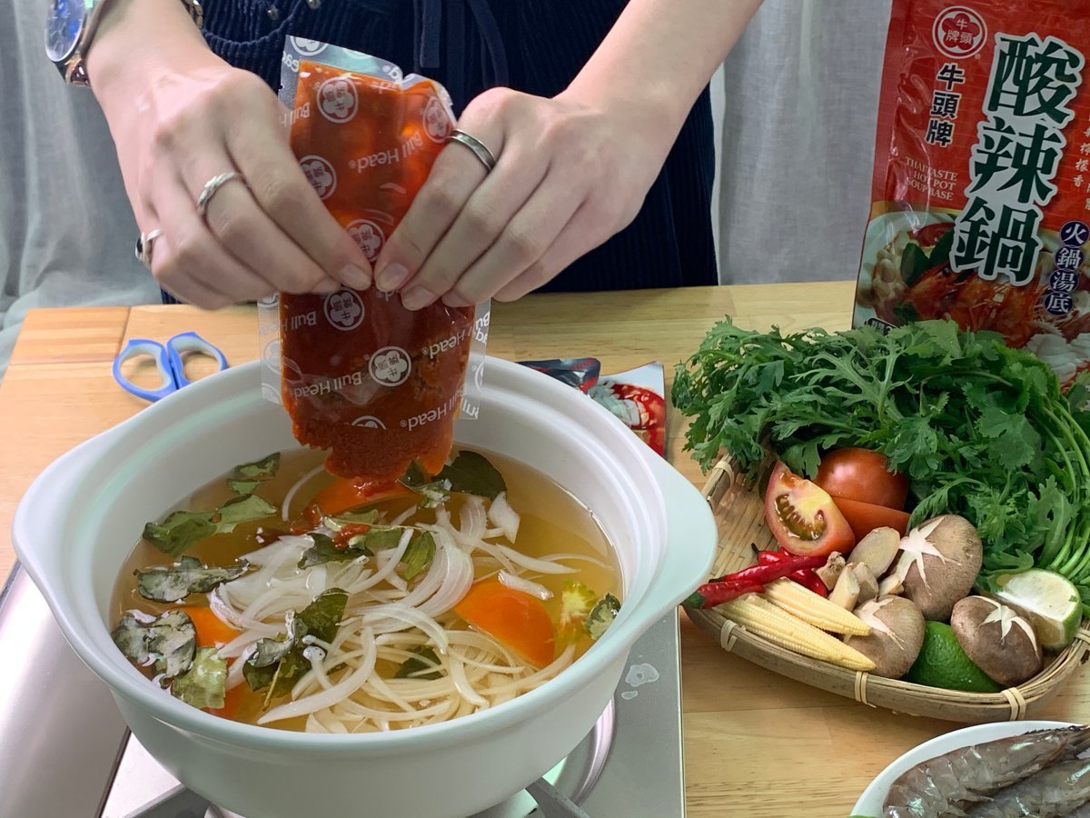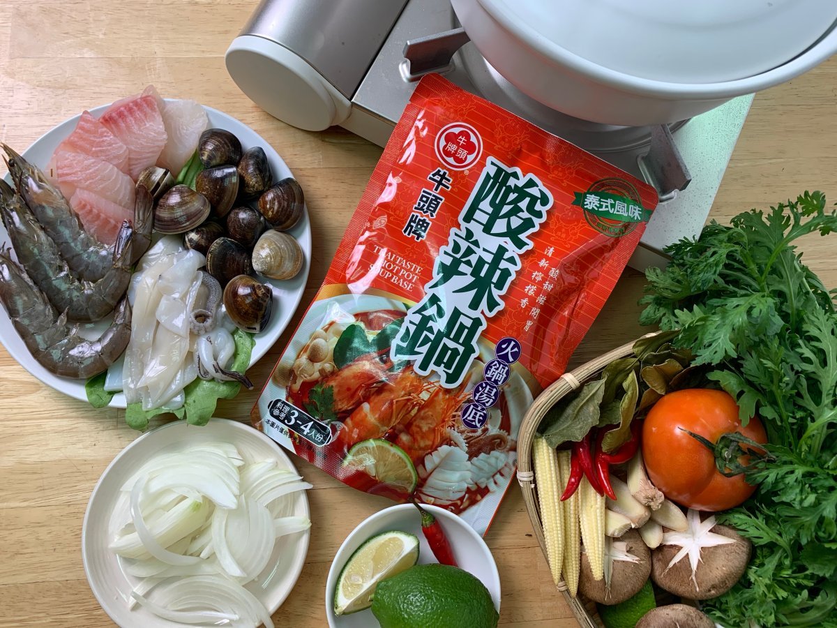 妞妞們喜歡吃泰式火鍋嗎?那酸辣的湯頭真的是太下飯、太涮嘴了!尤其是搭配海鮮一起煮,更是超級搭,而這樣的美妙滋味不用特地去泰式料理餐廳,買一包牛頭牌「泰式酸辣鍋火鍋湯底」就可以在家自己煮啦~