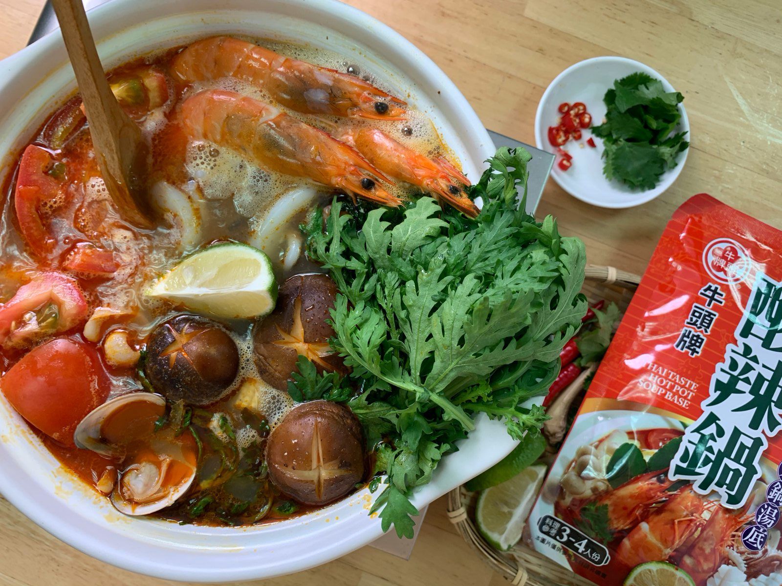 第一口喝下湯頭的時候,妞編輯想到了之前去泰國時掃貨的「mama麵」,酸、香、辣三種味道搭配的剛剛好,尾勁還帶有點檸檬和蝦醬的香氣,是一鍋連湯都可以直接喝光的火鍋呢!而且它一包鍋底、多元用處,除了能煮火鍋以外還能拿來製作泰式檸檬魚、泰式海鮮酸辣湯與泰式炒河粉呢,是不是超級划算~