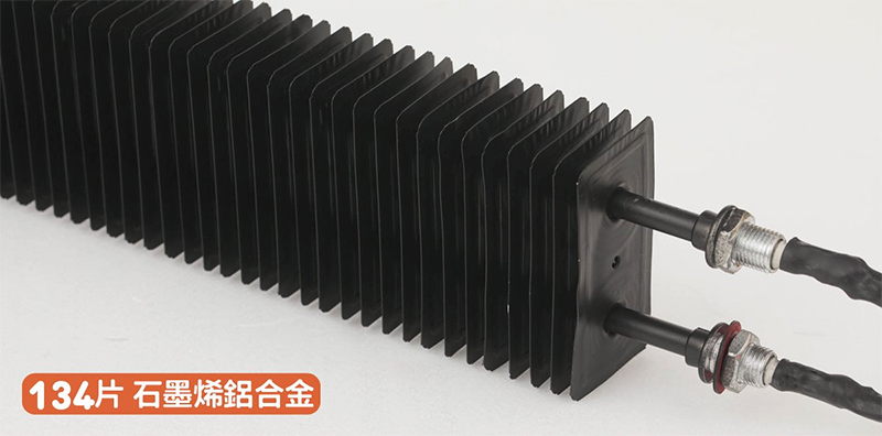 它的加熱機制是採用 134 片石墨烯鋁合金串聯成大面積的發熱元件,加上雙管制熱技術來加熱。石墨烯本身具備結構穩定、耐用與高導熱的特性,橫向熱導率更勝傳統的銅、鋁等金屬材料,能夠達成高效率且均勻的制熱效果。