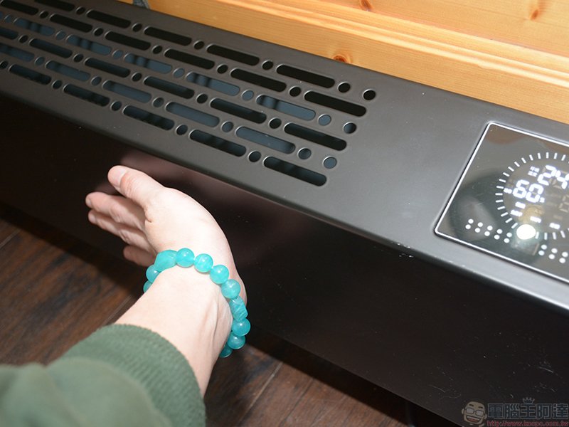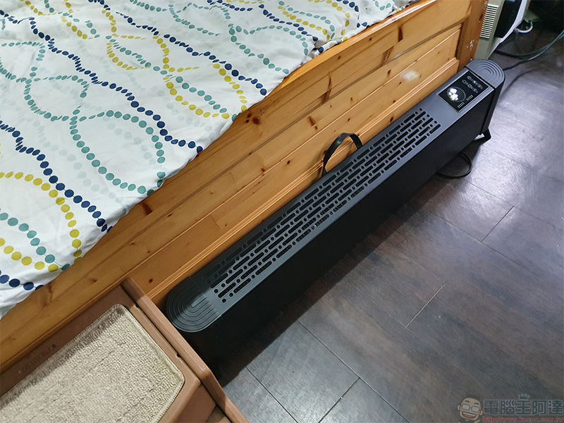 以筆者來說,房間裡面原本用的是 10 片式葉片電暖器,缺點就在於它實在很大、很高、很重又占空間,當我睡到一半起床上洗手間時,很容易不小心撞到它,聽得我睡意全消。MIZAI 暖霸石墨烯智慧瞬暖器狹長的設計,提供橫置式石墨烯加熱片與冷空氣之間最大的接觸面積,達成高效率的暖房效果,還可放置於床尾板處,更不易碰撞,且換季想要收納,或是要更換放置的空間時,我一拎就能放進儲藏室或拿進臥室,不需要跟過去一樣開戰車推來推去、閒人勿近。