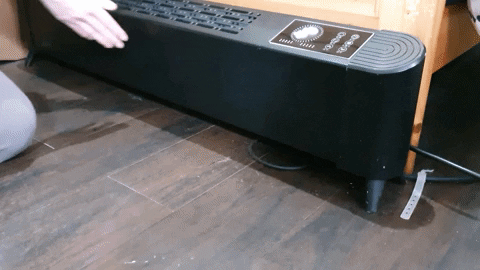 冷空氣進氣口位於機身前側下方,暖空氣送出口則位於機身上側,藉由暖空氣上升、冷空氣下降的對流原理來加速室內暖房效果。這樣的設計還有一個好處,就是能夠利用向上吹的熱風來烘乾一直晾不乾的衣服,筆者的用法是將隔天要穿的衣服掛在出風口上方的空間,隔天早上起來就有暖呼呼的衣服穿,不用靠體溫暖衣。