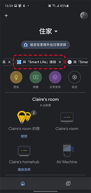 - 打開 Google Home 應用程式,從上面找到「與 Smart Life 連線」的項目,點下去!接下來基本上完全自動連結,不太需要你動手做些事情。