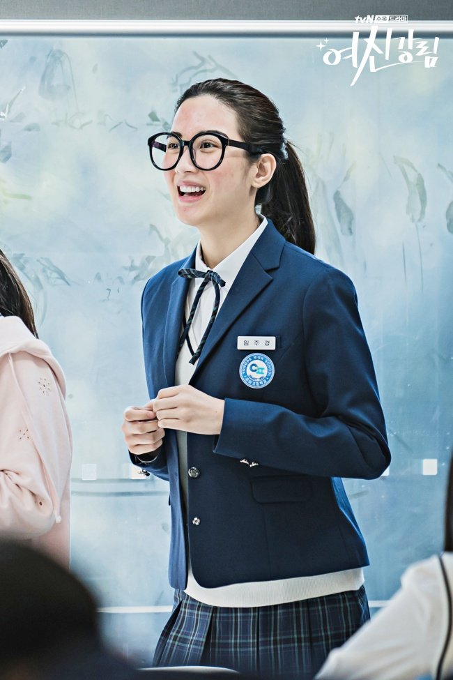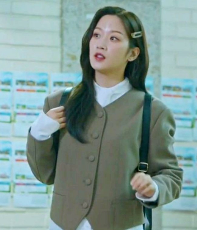 朱靜一改之前中規中矩的好學生無趣穿搭,會在制服外搭上一件簡單的「素色針織單品」,打造品學兼優的校花形象(可惜沒有學的部分XD),私服也是同樣的原則,曝光率最高的就是「彩度低的蠟筆色系針織上半身」。