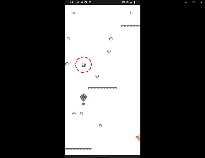 離線熱氣球遊戲的操作只需用手指左右滑動吃下許多小圓泡泡即可,吃得越多得分也越高。在熱氣球向上飄的旅程中,你還是要閃避各種帶有尖刺的障礙物,但也會有不少輔助的道具,像是幫助將所有圓泡泡吸過來的磁鐵等。隨著遊戲時間越長,氣球的速度會變快,障礙的數量會越多、出現的位置也越刁鑽。