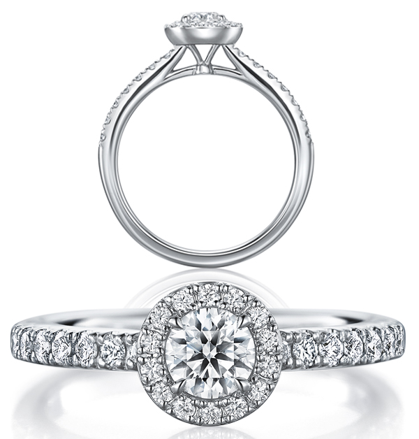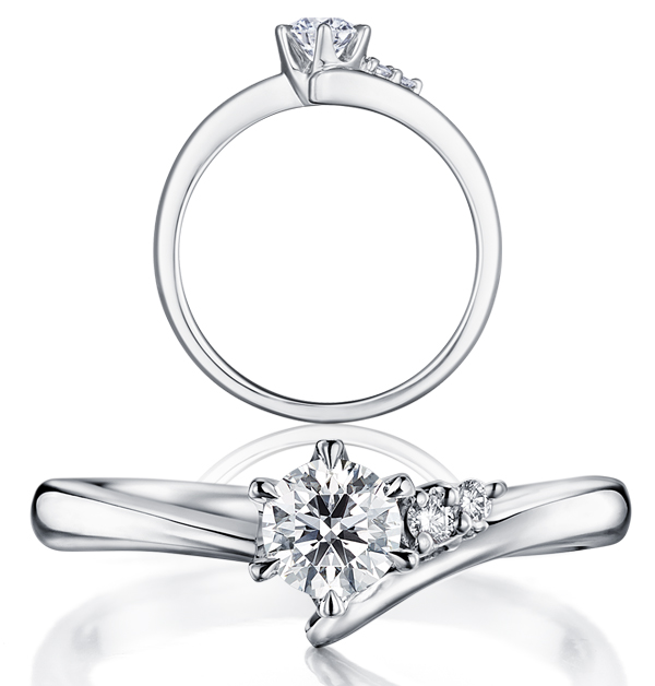 大小2顆配鑽與主鑽的漸層排列就像流星一般,從不同角度欣賞,時而華麗、時而簡潔,而細緻的V字型戒環,則讓鑽石充分展現翠燦耀眼的光芒。