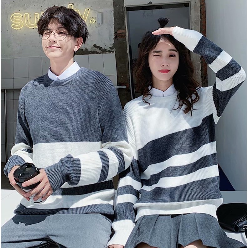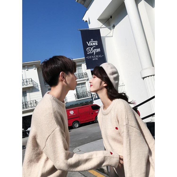 情侶裝的入門穿搭守則第一條就是找同款單品一起穿,不論比起一般的T-shirt,這款韓版寬鬆愛心針織衫就顯得更時尚有型,女生搭配條短裙、男生則穿個牛奶長褲就很好看囉!胸口和袖口的地方還有個愛心造型的設計小心機,幫你浪漫放閃。