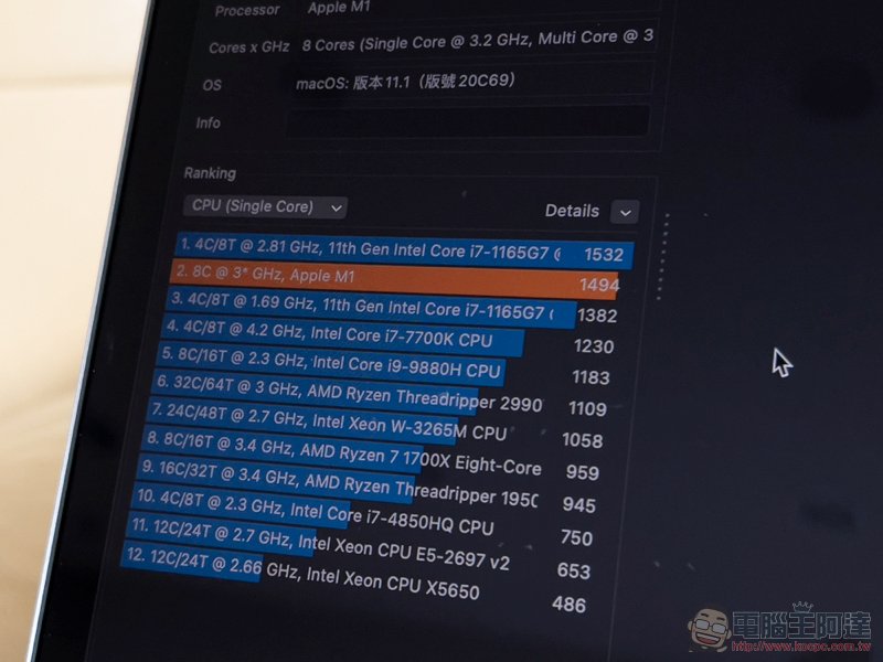 其實單就 CPU 的跑分跑分來講,的確如蘋果所說的那樣,M1 擁有碾壓大部分對手的超狂表現。甚至會讓人反過來覺得「這樣還叫做入門 Mac 嗎?」