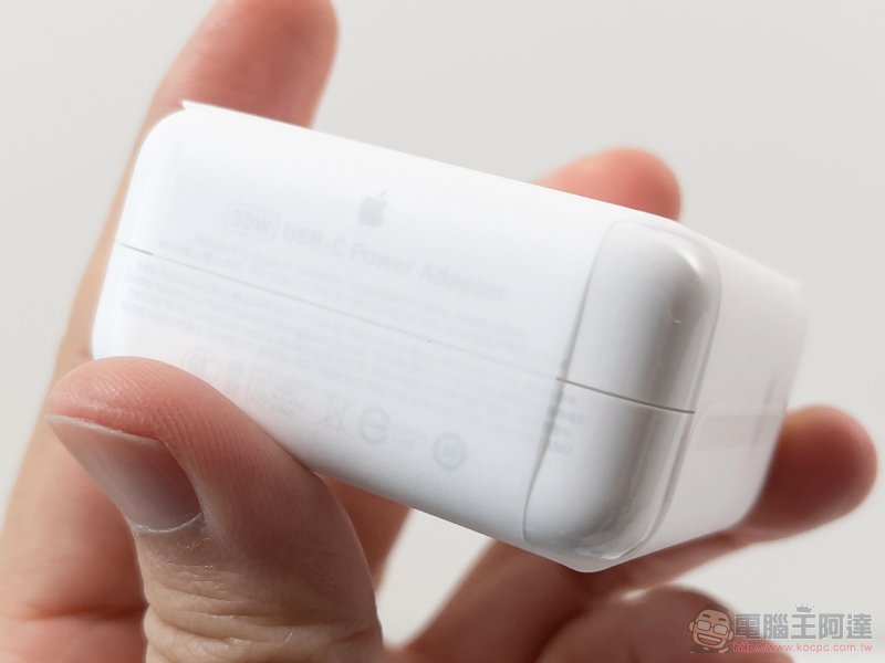 附上 30W 的 USB-C 充電器 -- 相對於 MBA 的 49.9Wh 電池,58.2Wh 電池的 MBP 附上的則是 61W 的 USB-C 充電器: