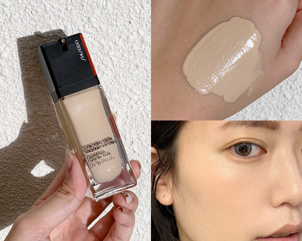 資生堂的超進化系列也推出潤光型粉底,這款粉底液質地比較濃稠,因此完全不怕顯毛孔,很適合毛孔肌使用~他剛上臉時是水光感,細膩透亮的妝感讓肌膚質感看起來非常高級,還帶有微微的澎潤效果,他的遮瑕度薄擦大約是5-6成,對於一般肌膚來說不搭配遮瑕膏就很夠力!不過因為他的質地比較保濕,更適合乾肌使用,混和肌、偏油肌建議還是要定妝~