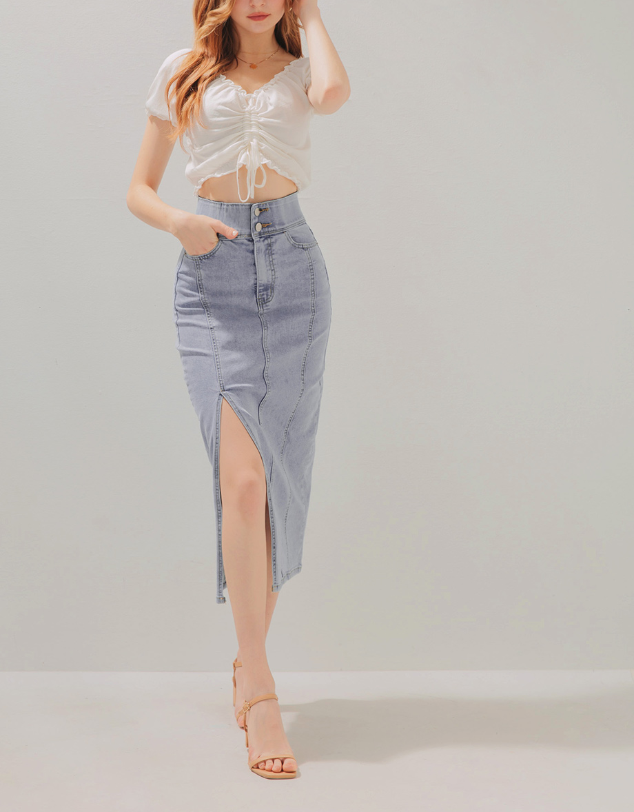 誰說穿短裙很沒安全感?這件翹臀顯瘦側開衩牛仔褲裙絕對讓你意想不到!除了零修圖系列基本的高腰設計,版型設計讓視覺上拉提臀部,巧妙調整你的臀圍,讓你擁有3D翹臀,整體性感到不行啦!