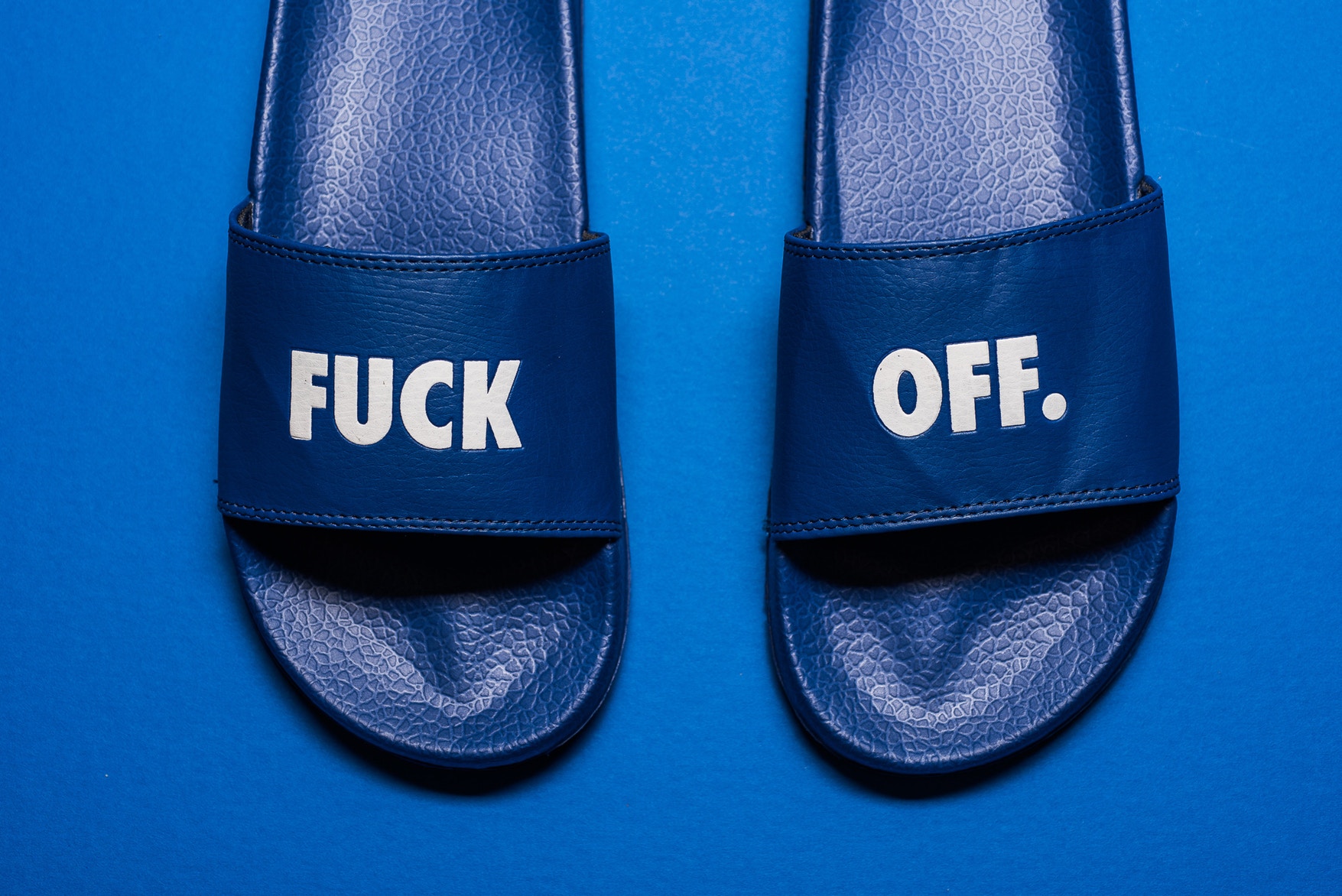 繼先前推出的黑、白、紅三色「FUCK OFF」拖鞋,加拿大知名街頭品牌Raised By Wolves於近日再度推出兩款新配色,分別是藍白及黑紅,搶眼色調搭配醒目fuck off字樣,整體設計吸睛度破表,你怎能錯過?
