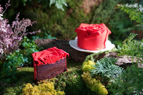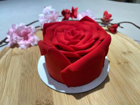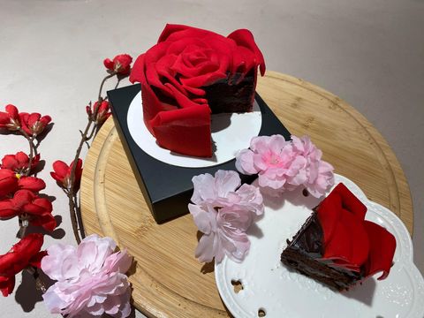 玫瑰花蛋糕精美的擬真花瓣讓人捨不得切開,完全可以榮登情人節IG打卡甜點之星!