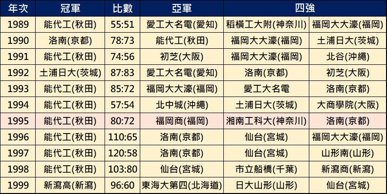 由於井上創作灌籃高手的年代是90年代,若井上是參考90年代日本高中IH大賽的最後四強的名單, 冠軍隊來自福岡的機會非常大,這也是博多商大附屬(福岡)被認為是最熱門的冠軍隊的主因。
