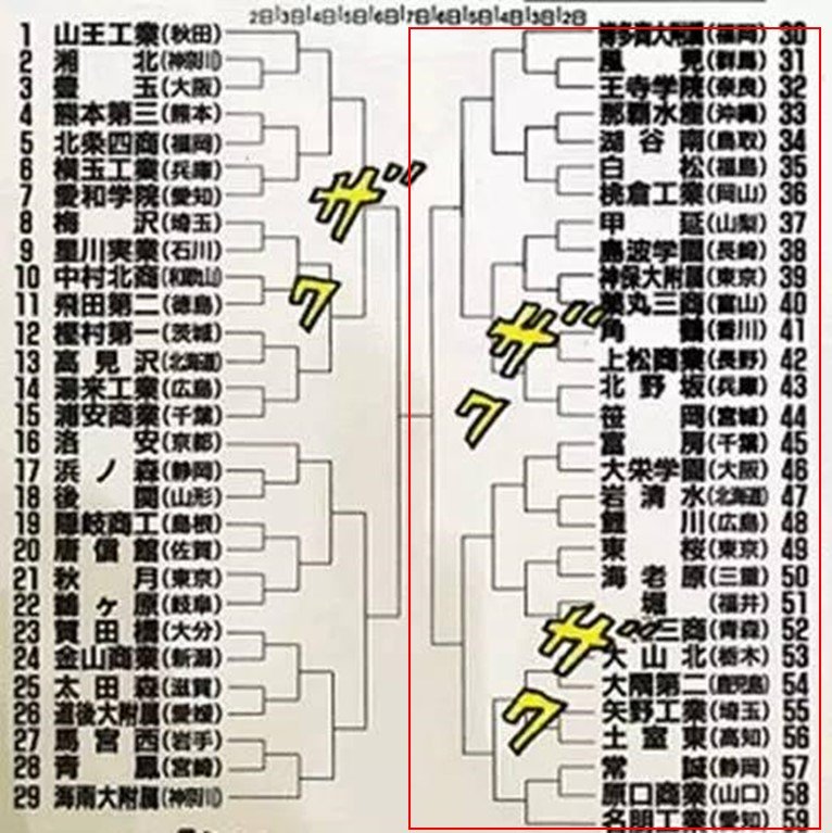 由於漫畫裡,海南大附屬確定拿到亞軍,所以冠軍球隊一定來自右半邊的球隊(30~59)。