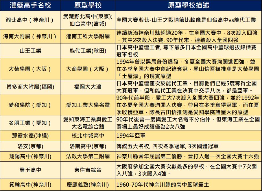 灌籃高手全國大賽熱門隊伍的原型學校是誰呢? 以下根據井上雄彥及死忠粉絲的討論內容作一解析: