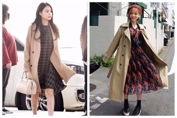 技巧二:連身裙飄逸感v.s.俐落大衣呈現女人味的對比效果!