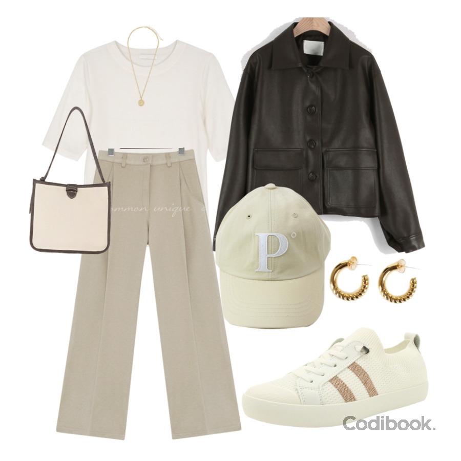舒適的棉T及西裝褲,配上同色系休閒鞋再披上深咖啡色皮外套,簡單有型,同色系的帽子一戴,不用化妝也看不出來熬夜追劇的倦容XD