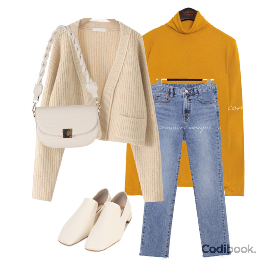 鮮豔的黃,配上香草奶油色的針織外套、包包與樂福鞋,搶眼中又帶有韓國小姐姐的溫柔氣質感
