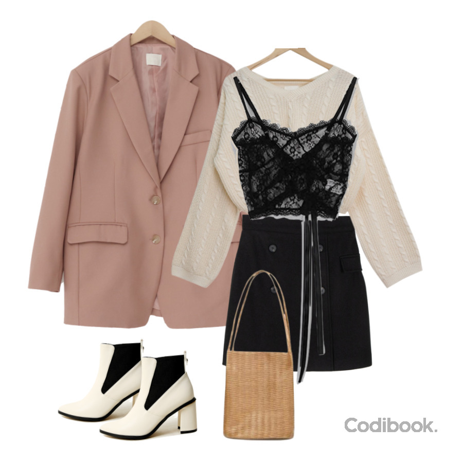 柔軟的針織材質,配上性感的蕾絲小可愛,再用煙燻鮭魚粉色增添一點『色氣感』,最後用有點個性的撞色短靴收尾,衝突中帶有平衡,簡直就是高手等級的穿搭呀