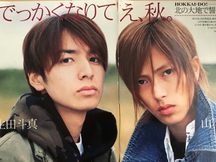 不過,說到Jr.時期的衣服,好幾次被迫穿上很糟糕的服裝。生田斗真回憶說:「還記得是Kinki的演唱會,衣服是很簡單的金色夾克,下半身是黑色長褲。因為好不容易登上演唱會舞台,社長為了讓觀眾記住我們的名字,決定讓我們在背後寫上自己的名字,用膠帶黏成了漢字。當下覺得這樣一定行不通(苦笑),還是覺得貼膠帶太遜了,因此社長就讓我們自己寫,還買白紙跟墨汁過來,我們就像在寫毛筆字一樣,然後把紙貼到背後。」
