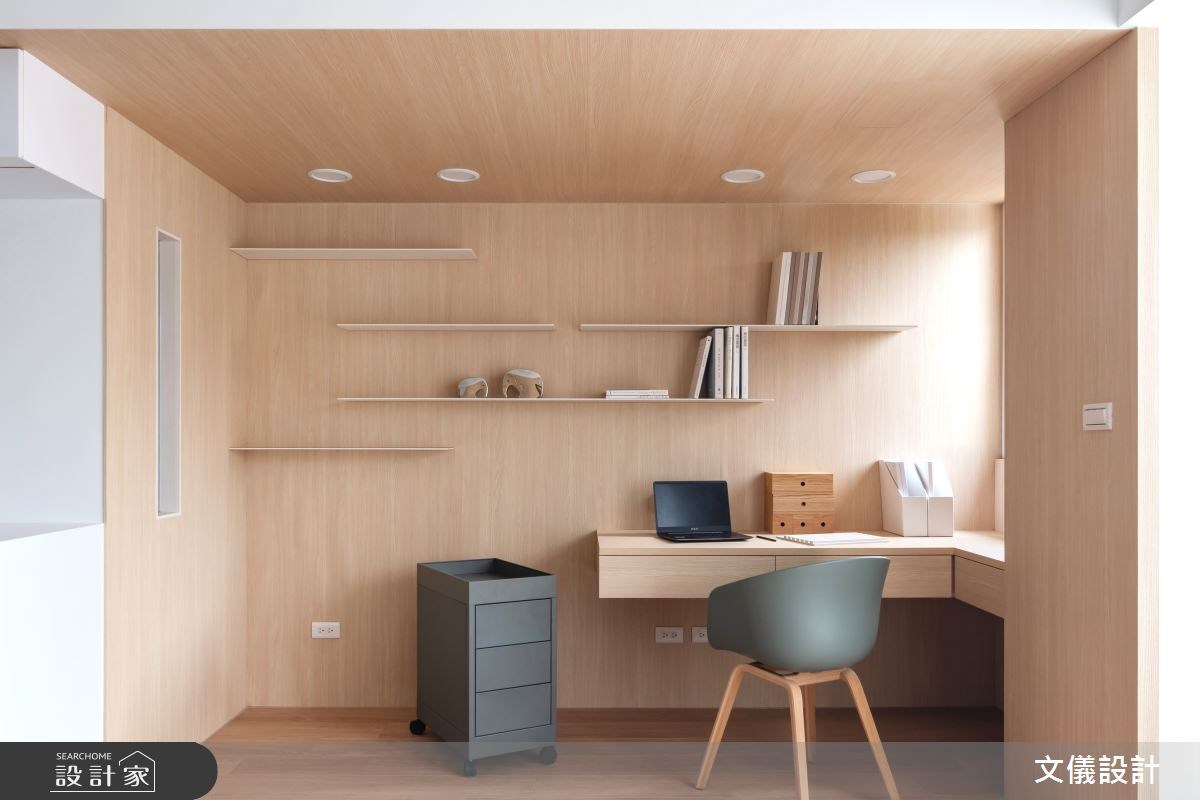極簡設計若拿捏不恰當,容易產生過多的留白而略顯單調,書架設計亦是如此。因此以下兩款書桌上方的大面積展示層架,不論是層架的長度、框格大小及高度位置,皆規劃不只一種尺寸,書架多了層次與趣味,常見的層櫃設計瞬間與眾不同。