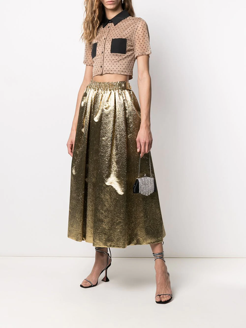 氣質優雅的金色長裙,簡單配上黑白色T恤、毛衣、襯衫就很好看,也是入門款金色單品,怎麼搭都不出錯!