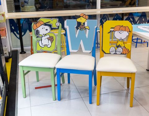 7-11台南史努比主題店:座位區椅子也充滿史努比運動設計