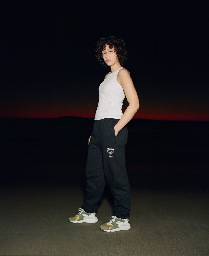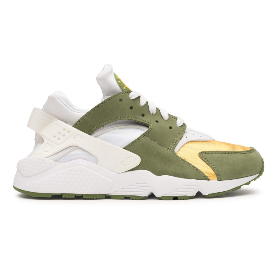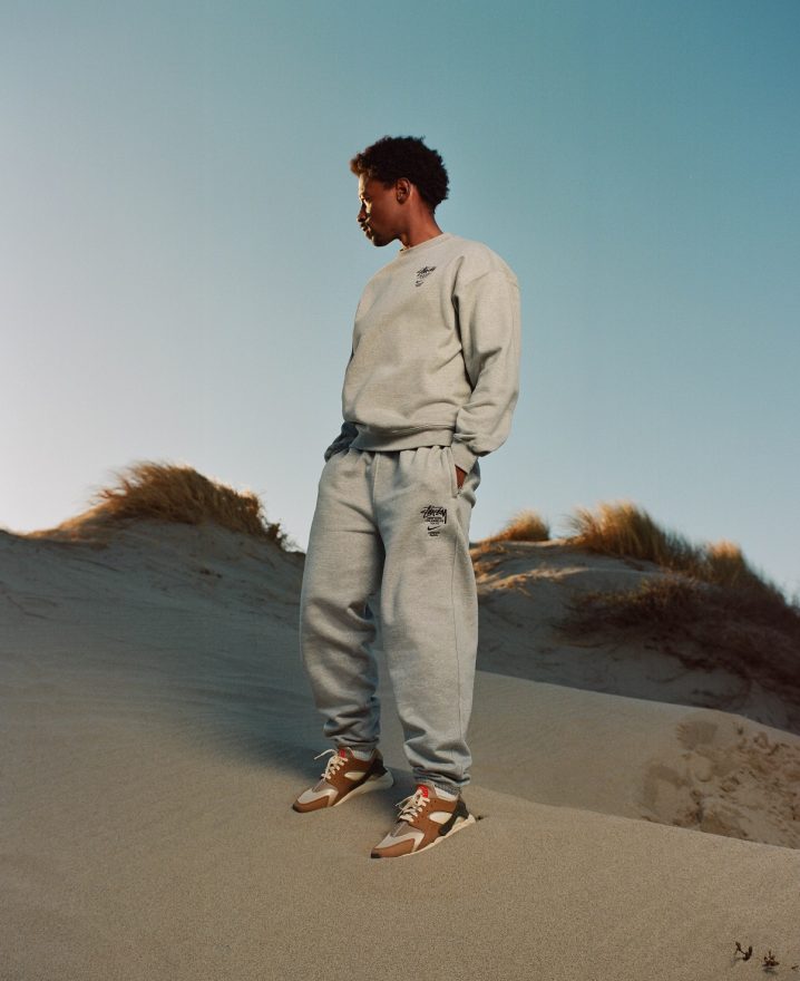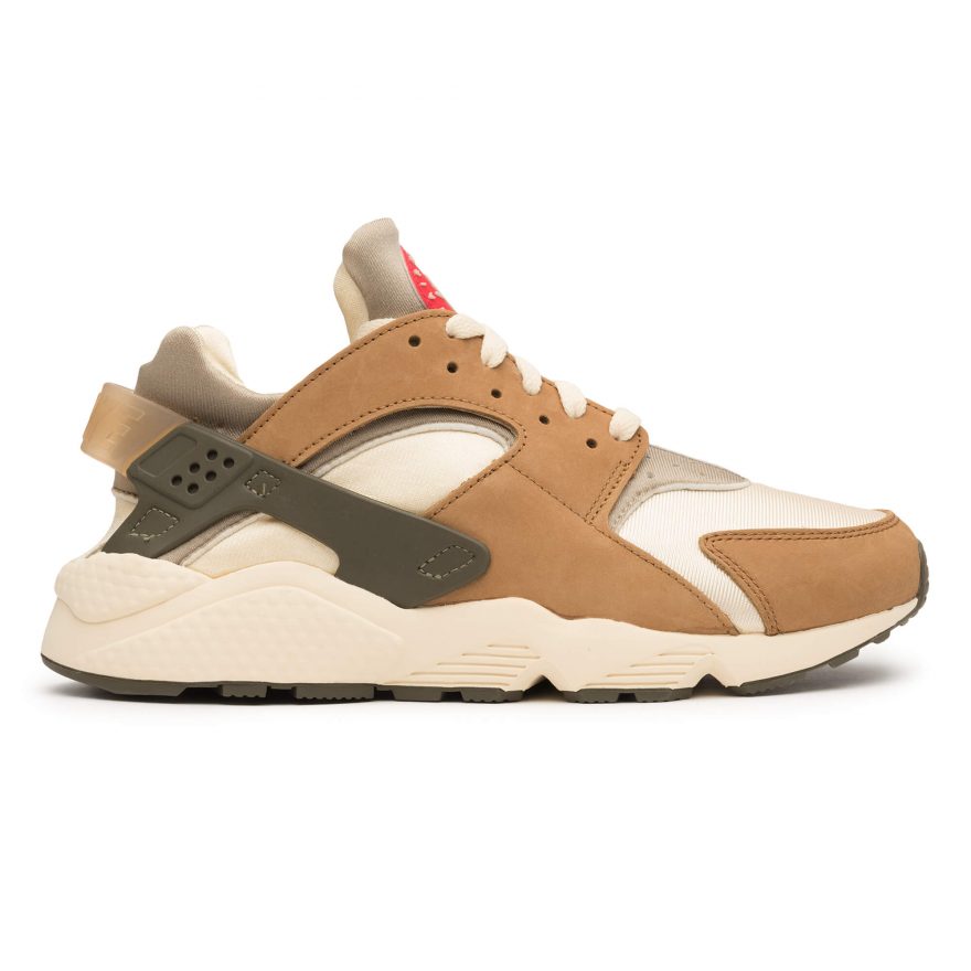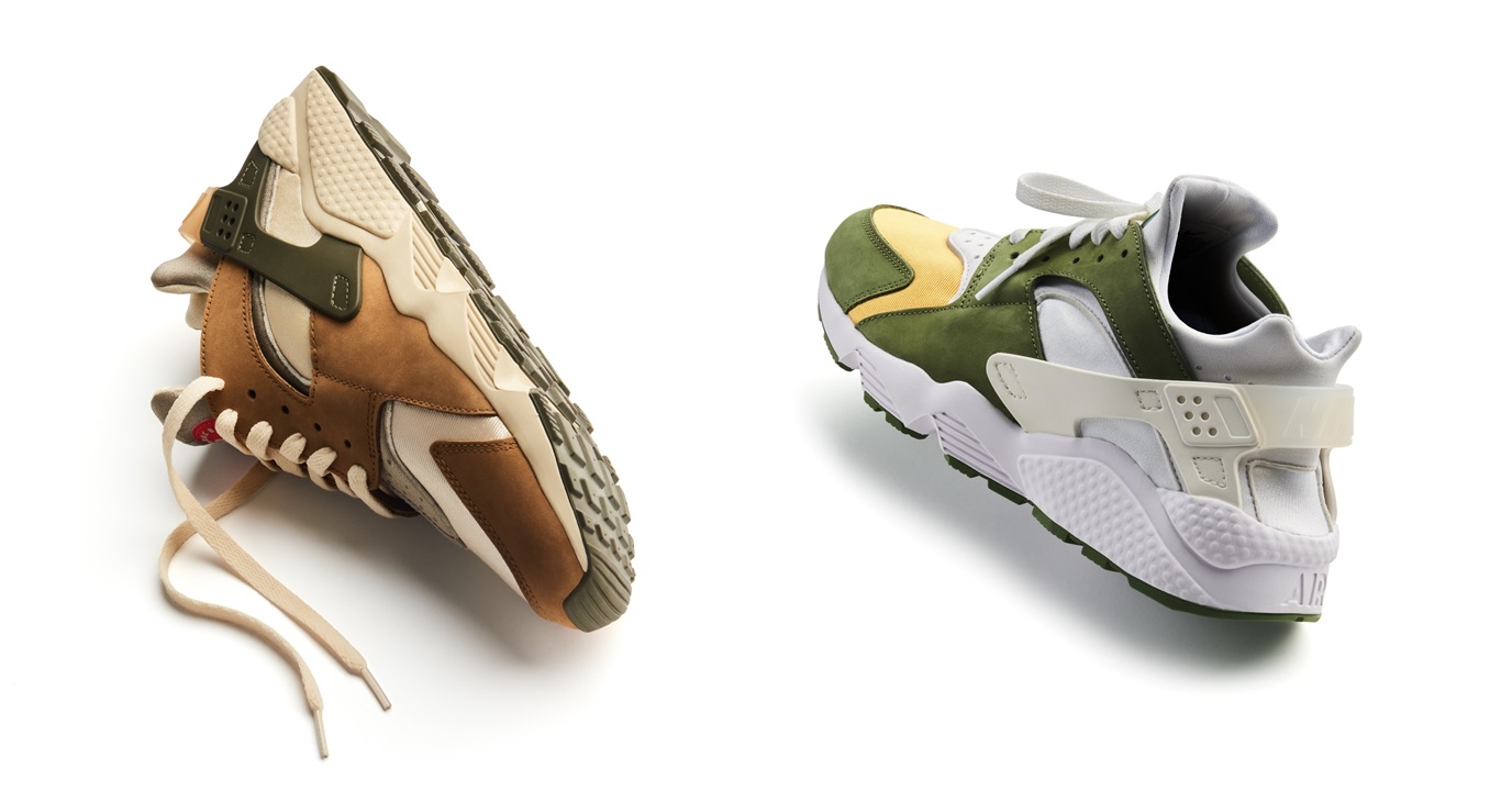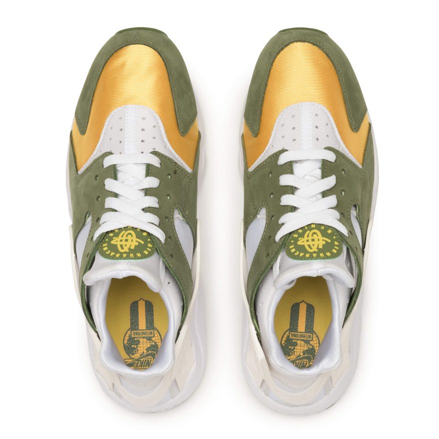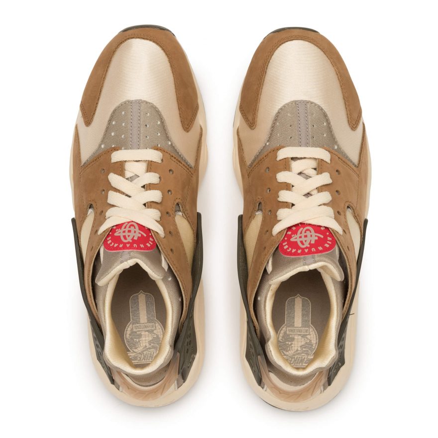 Stüssy 和 Nike 再次聯手推出 Air Huarache,重現雙方於 2000 年時合作的配色,採用了獨特的大地色系,搭配採用絨面革和織物鞋面,結合 Neoprene 與 Lycra 物料套用在鞋款,並以襪套式設計來增加穿著之方便,同時換來舒適、輕量及穩定性。Stüssy 和 Nike 以刷毛衛衣套裝結合彰顯了此次合作,設計方面同樣以 Stüssy 的 World Tour 概念貫穿。