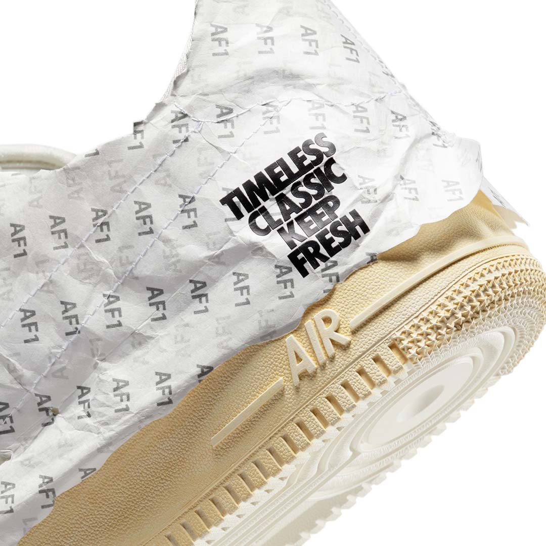 最近幾款 Nike Air Force 1 作品都在材質運用上別有心得,之前的可替換魔鬼氈鞋面 Air Force 1/1、能撕開鞋面露出底布的 Air Force 1 ‘Tear Away’,今天介紹的 Nike Air Force 1 ‘Timeless Classic Keep Fresh’ 概念則是將隨鞋附的襯紙融入鞋面中,有趣的是這一片紙並非完全縫在鞋面上,而是如同一個罩子般套在鞋上,露出仿舊的米色中底,另外襯紙上有一行 Timeless Classic Keep Fresh 字樣,有可能是 Nike 新系列主題名稱,或許未來我們能在更多經典鞋款上看到襯紙元素的運用。目前 Nike Air Force 1 ‘Timeless Classic Keep Fresh’ 尚未有發售相關資訊,喜歡的朋友不妨賞圖先。