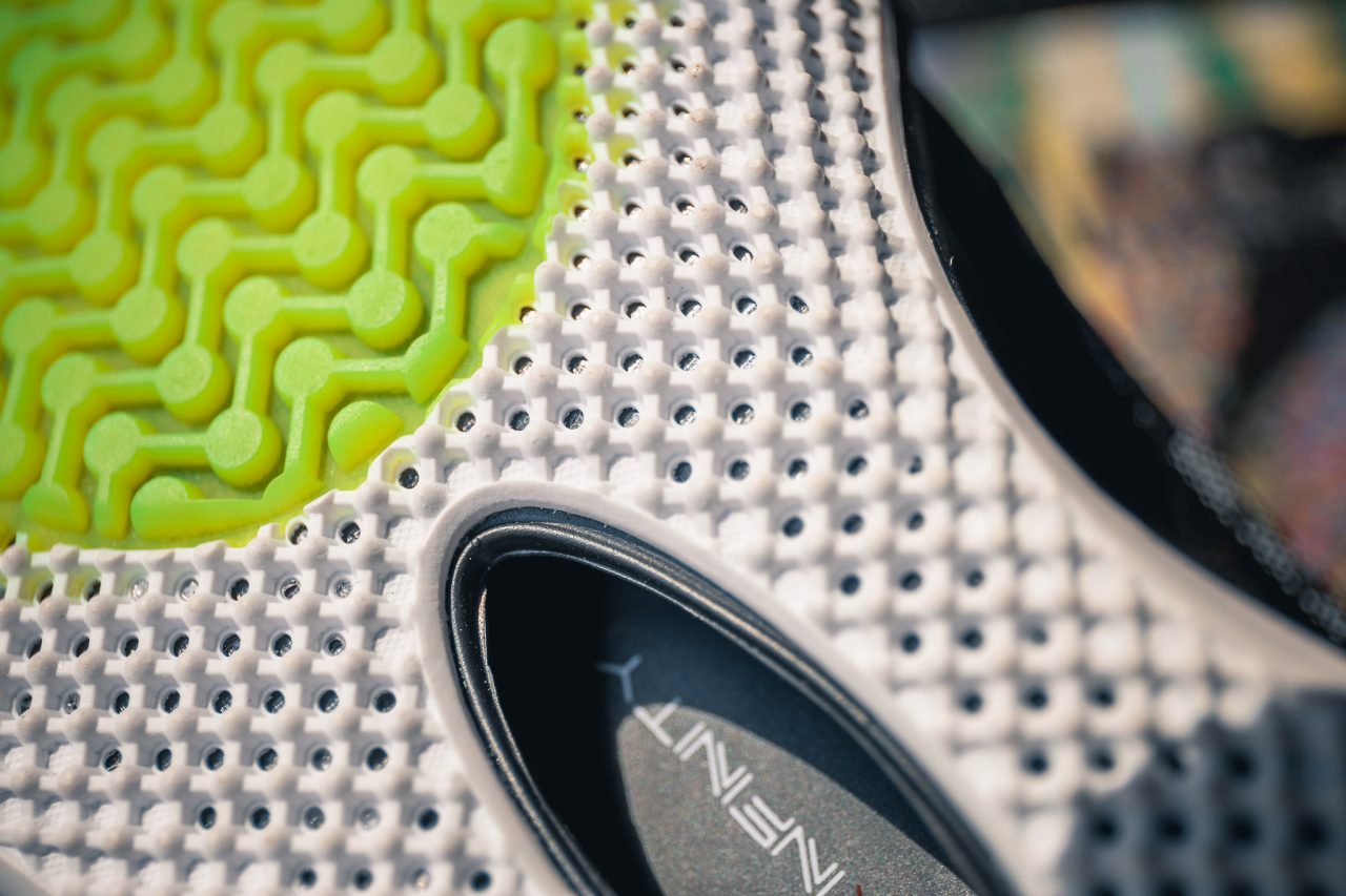 貼在外底夾層間的是全長碳纖維板,透過外底一個個小圓孔還隱約可見碳纖維紋路。