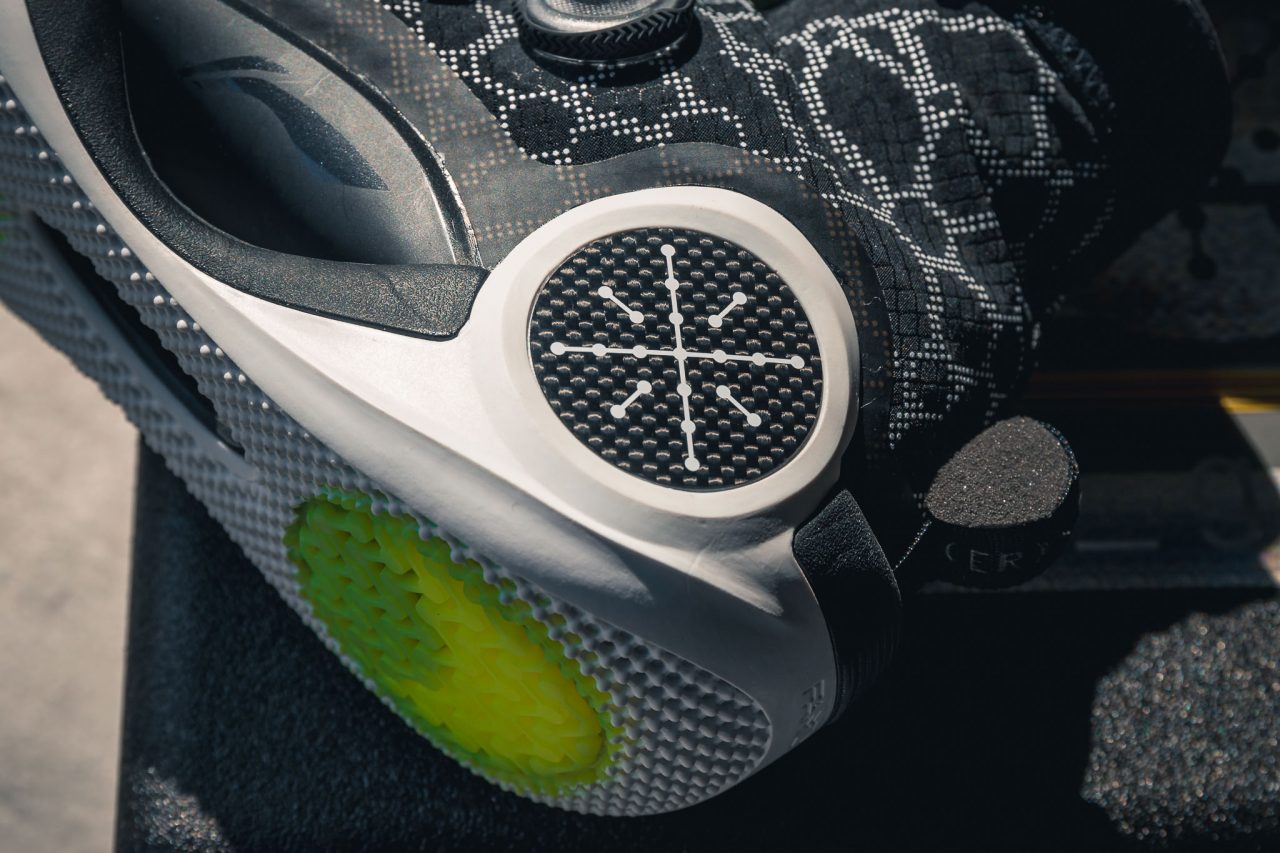 中底弜科技 (弧形結構) 騰空的部份用一片 PEBAX 承托腳掌,編輯穿起來完全沒有壓迫足弓的情況。跟另一款也搭載弜科技的跑鞋「絕影」穿起來同樣有很鮮明的動感,而 Way of Wade 9 Infinity 畢竟是給籃球使用,穩定度更高。