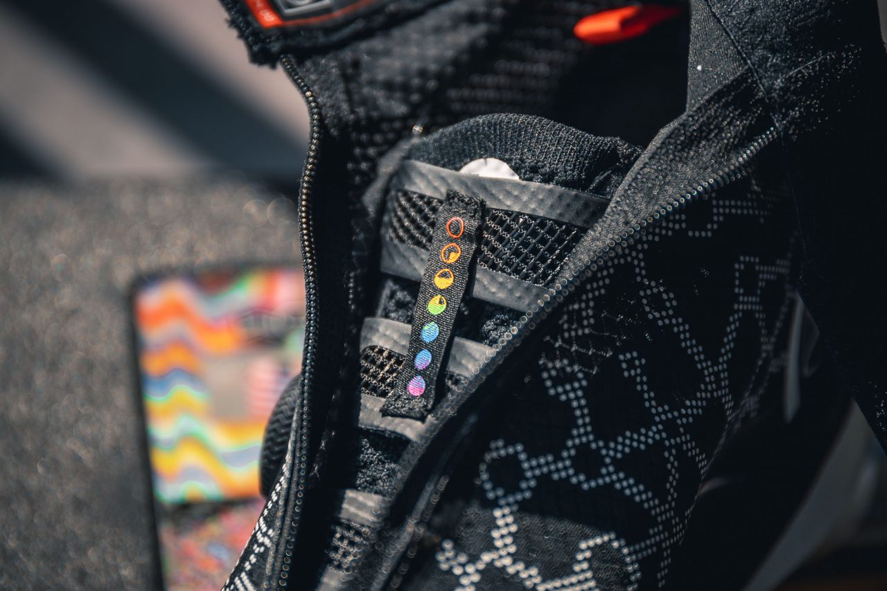 鬆開拉鍊能看到有三條帶子連接 BOA 系統的線繩,鞋舌是一體式的,接近襪套鞋領的做法,所以穿進去的時候會要費點工夫,鞋舌如果能長一點讓手較好抓著會更方便。