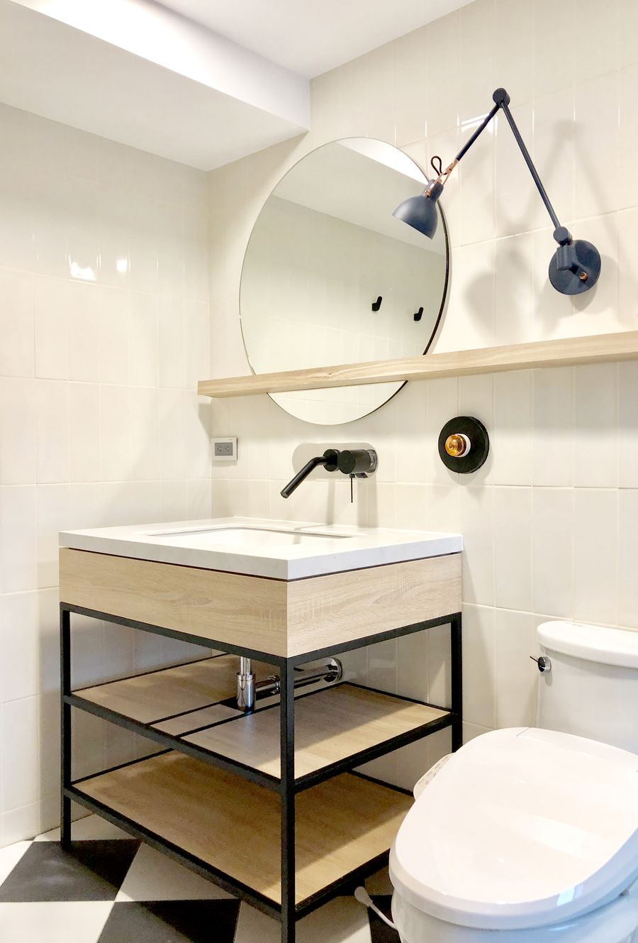 值得一提的是,廚房原始中央位置有一扇門通往後方工作陽台,但為避免穿堂煞,於是設計師將之封閉,把入口改到側面,如此一來進出尤為方便,還最大程度保持了本區的空間完整性,並且在施工期間,更特別注重廚房水路管線品質,確保水流暢通,符合「遇水則發」的關鍵道理。