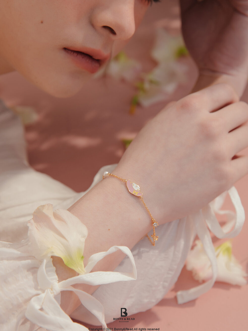 MY MELODY美樂蒂是日本三麗鷗第一隻以兔子為造型的卡通人物,在2020年三麗鷗肖像大賞獲得第四名成績,可見美樂蒂在全球人氣指數不可小覷。BONNY & READ的品牌經理表示:「這次的聯名設計,以春季來臨生氣蓬勃的花園為發想,並用粉紅色加上金色讓人感到溫暖,再以一些粉紫色點綴,因為我們不想侷限美樂蒂只能有可愛的風格,款式上除了百搭的耳環、手錬和項鍊之外,更增添了今年流行的耳扣款式,讓粉紅色也能很有力量和個性,不單是可愛還能穿戴出知性的粉色穿搭,希望此次MY MELODY花園系列飾品能讓少女們能感受到不同的粉紅時尚魅力。」