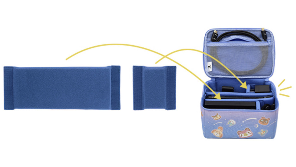 其中「動森Switch主機收納包」是比較經典的收納款式,全開上掀蓋搭配保護蓋及上方收納夾層,能夠放置遊戲卡與其他小物!Switch或Switch Lite都能夠完整放入~