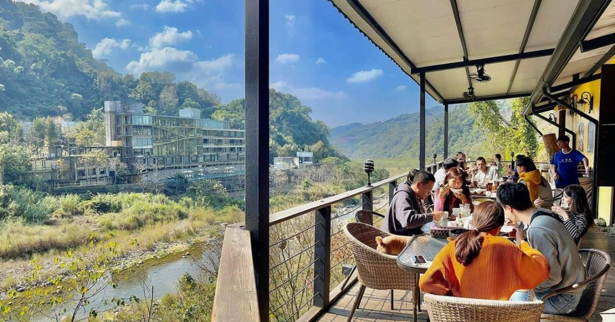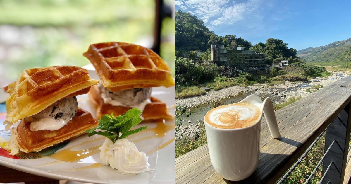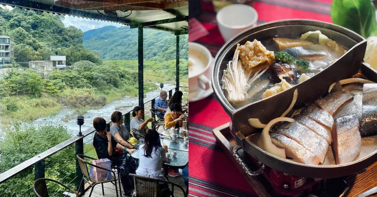 套餐包含小米烤麻糬跟一份桂花蜜紅茶,非火鍋還附上主廚濃湯,能吃得很滿足。若不幸已經先在別處吃飽後才發現這裡,也不要緊,坐下來喝杯下午茶。所謂「台灣景觀餐廳」常見的鬆餅,抹茶、水果、冰淇淋口味應有盡有,一杯咖啡拿鐵或原住民風味的「馬告家鄉咖啡」,溪流前你可能剛泡完溫泉或待會準備去泡溫泉──都好,再坐久一點,遠離城市要慢活優閒。