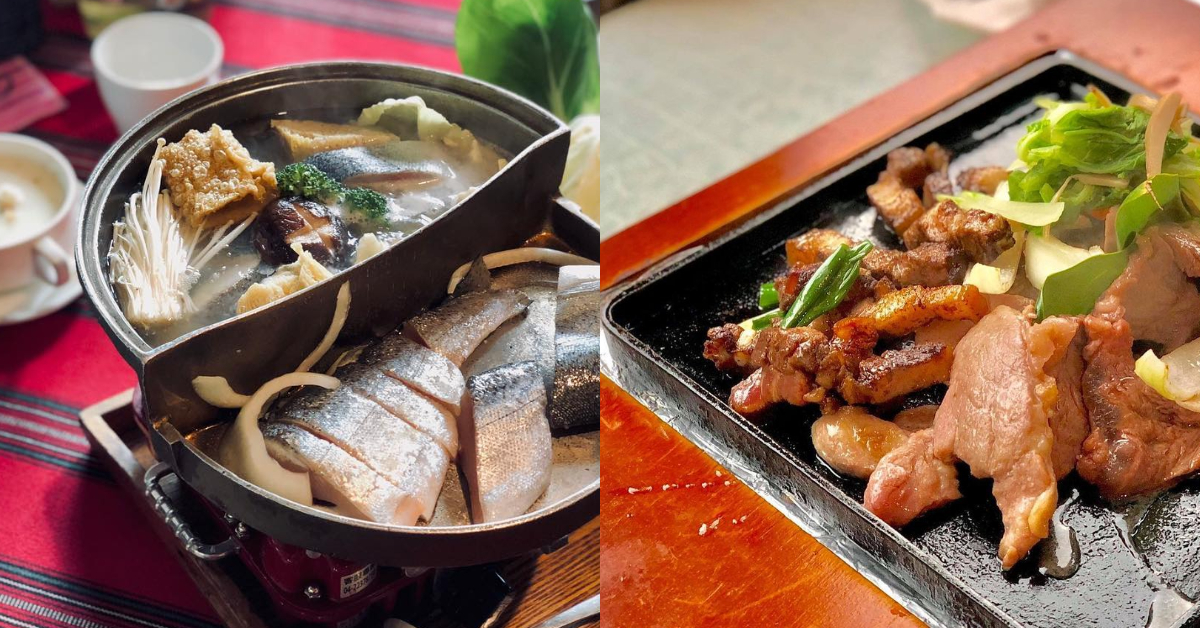 「山鱒魚火鍋」是此處的特色招牌菜,這道「山鮮」在別處不容易吃到。湯頭有紅椒檸檬、藥膳、泡菜等,「南瓜牛奶蔬菜」則最受歡迎,大家愛它因為香濃,再熬進魚肉的鮮甜,整鍋湯都能一匙匙舀著喝光;鍋子升級,「火烤兩吃」的另一側供你煎烤鮮魚,香氣飄散在大自然裡。另一道招牌「鐵板三拼」,是牛排、嫩豬、鹹豬肉的原住民板岩燒,燒得焦香又油亮,下飯非常,幾位遊客說自己每次來都必點這道。