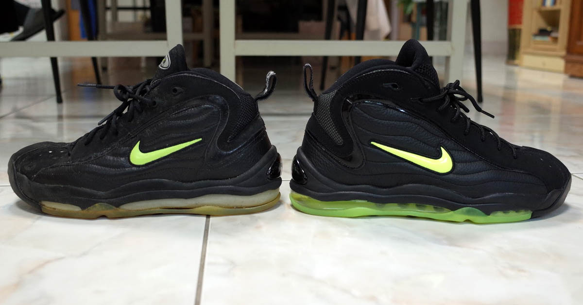 1995 年出生、2019 年復刻 的 air max uptempo 黑螢光 比較:
