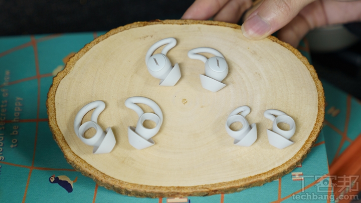 單從外觀設計來看,Bose Sleepbuds II 和前一代看似並無二致,不過實際上魔鬼藏在細節裡,這款經過重新設計的遮噪耳塞,重量僅 2.27 公克、比前代 2.3 公克再輕巧一點,全新搭配的矽膠耳塞套亦通過壓力均衡技術且材質親膚,加上耳機本體十分小巧,貼合耳朵、不會露在耳朵外,因此平時習慣側睡的使用者,基本上不必擔心會壓迫到耳廓產生不適,久戴入眠不易形成雙耳負擔,另在鯊魚鰭耳翼的輔助下,筆者配戴整夜未曾脫落過,至於外殼則標榜使用抗摩擦塗層,可避免與枕頭摩擦產生吱吱聲。